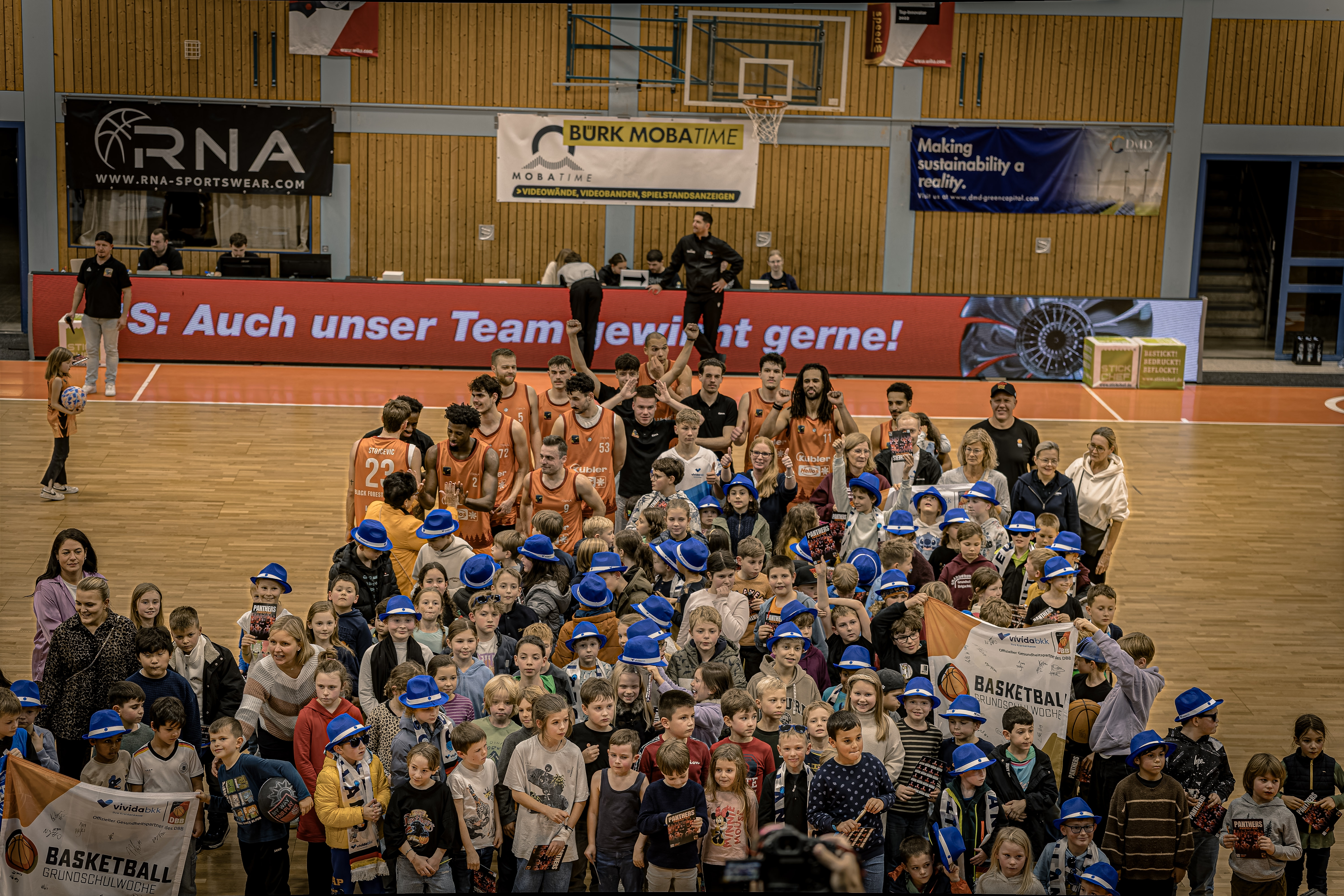 Abseits des Schulgeschehens wartete ein weiteres Highlight: Die vivida bkk und die Black Forest Panthers verteilten 300 Freikarten für ein Basketballspiel am 16. November in der ausverkauften Deutenberghalle in Schwenningen. Dort erlebten die Kinder die Atmosphäre eines echten Basketballspiels und hatten die Gelegenheit, mit ihren Familien die Spannung eines Profisport-Events zu genießen.